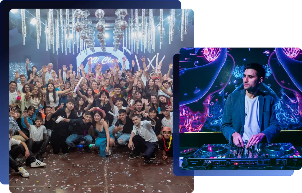 Trabajo como DJ en 15 años, bodas y eventos sociales en La Pampa, acompañando a familias y planners a diseñar cada momento para que la fiesta se viva, se disfrute y se recuerde.