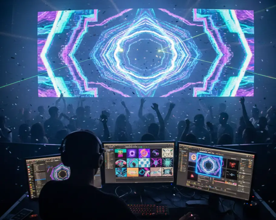 Integración de música y visuales para acompañar el evento con una puesta cuidada y coherente.